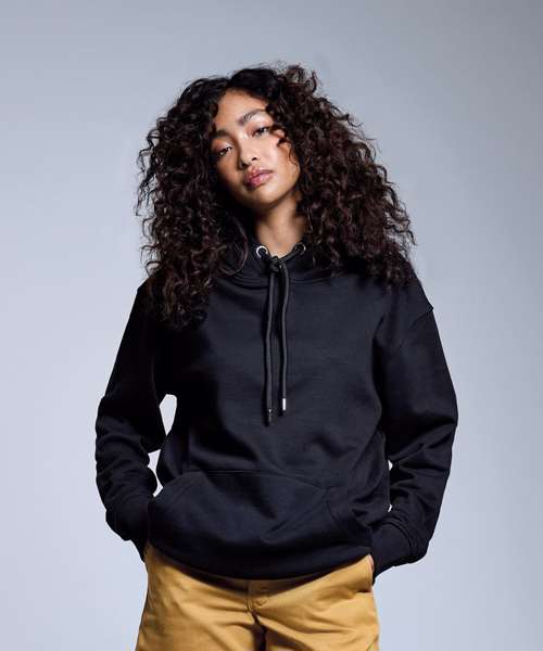 Shaped to fit. 320gsm. Peached fabric, soft-feel finish. Waffle knit hood. High polished, nickel free eyelets and drawcord ends. Polyester dyed to match tubular draw cord. Brushed fleece inner. Twin-needling detailing creates a high quality finish. Cut and sew two by one ribbed cuffs and hem. Kangaroo pouch pocket. Self-coloured neck size label.